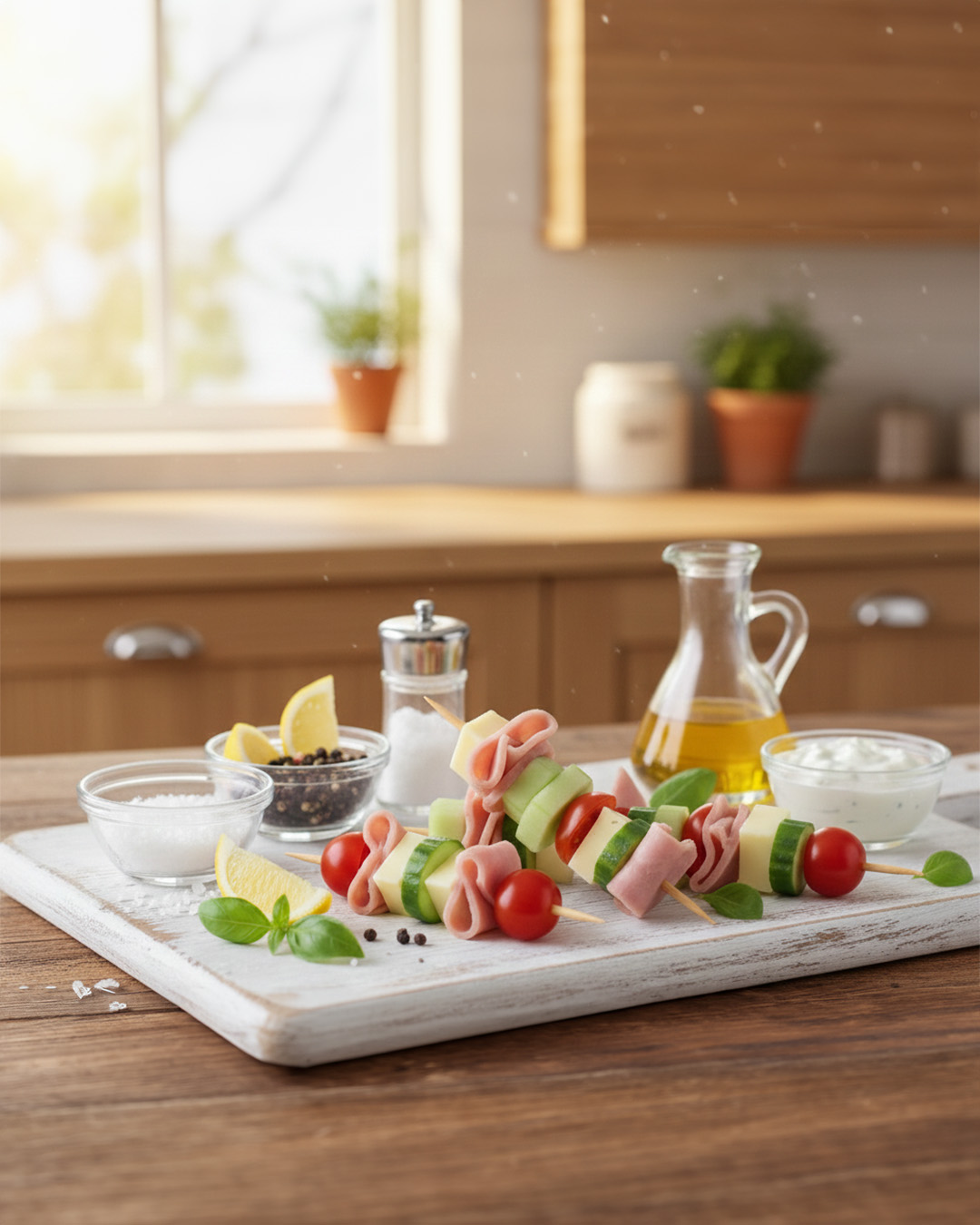 Brochetas refrescantes de Jamón y queso